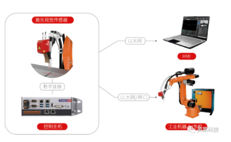 激光視覺焊縫跟蹤系統(tǒng)由焊縫跟蹤傳感器及控制主機(jī)組成,傳感器負(fù)責(zé)焊縫信息的主動(dòng)采集,控制主機(jī)負(fù)責(zé)焊縫信息的實(shí)時(shí)處理,并與工業(yè)機(jī)器人或焊接專機(jī)保持實(shí)時(shí)通訊,讓工業(yè)機(jī)器人或焊接專機(jī)實(shí)現(xiàn)焊縫尋位、焊縫實(shí)時(shí)跟蹤的功能,識(shí)別焊縫偏移矯正焊接軌跡,實(shí)現(xiàn)真正的智能化焊接。